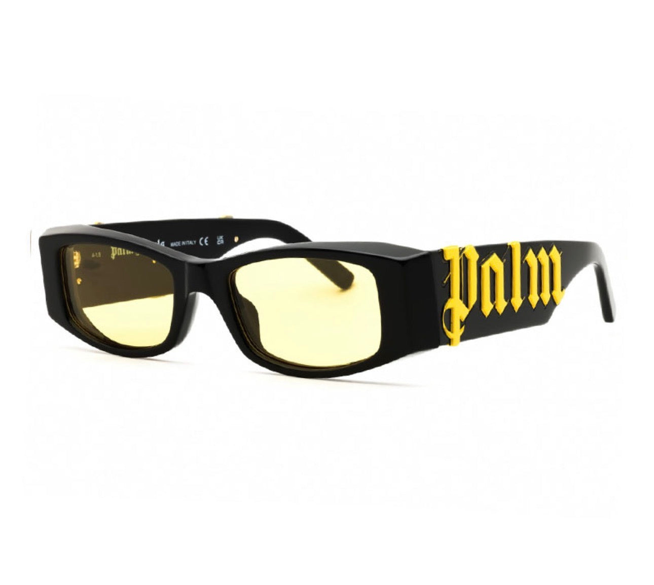 Bold and modern, these Palm Angels rectangle eyeglasses feature a black acetate frame with striking yellow lenses and signature temple detailing. Designed for unisex wear with a full-rim silhouette that delivers statement style and everyday durability.